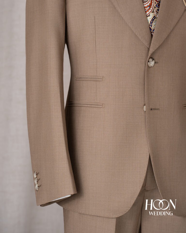 Thiết Kế Three-Piece Đẳng Cấp: Bộ 3 mảnh (vest, gile, quần) mang lại sự trang trọng và hoàn hảo cho ngày cưới.
