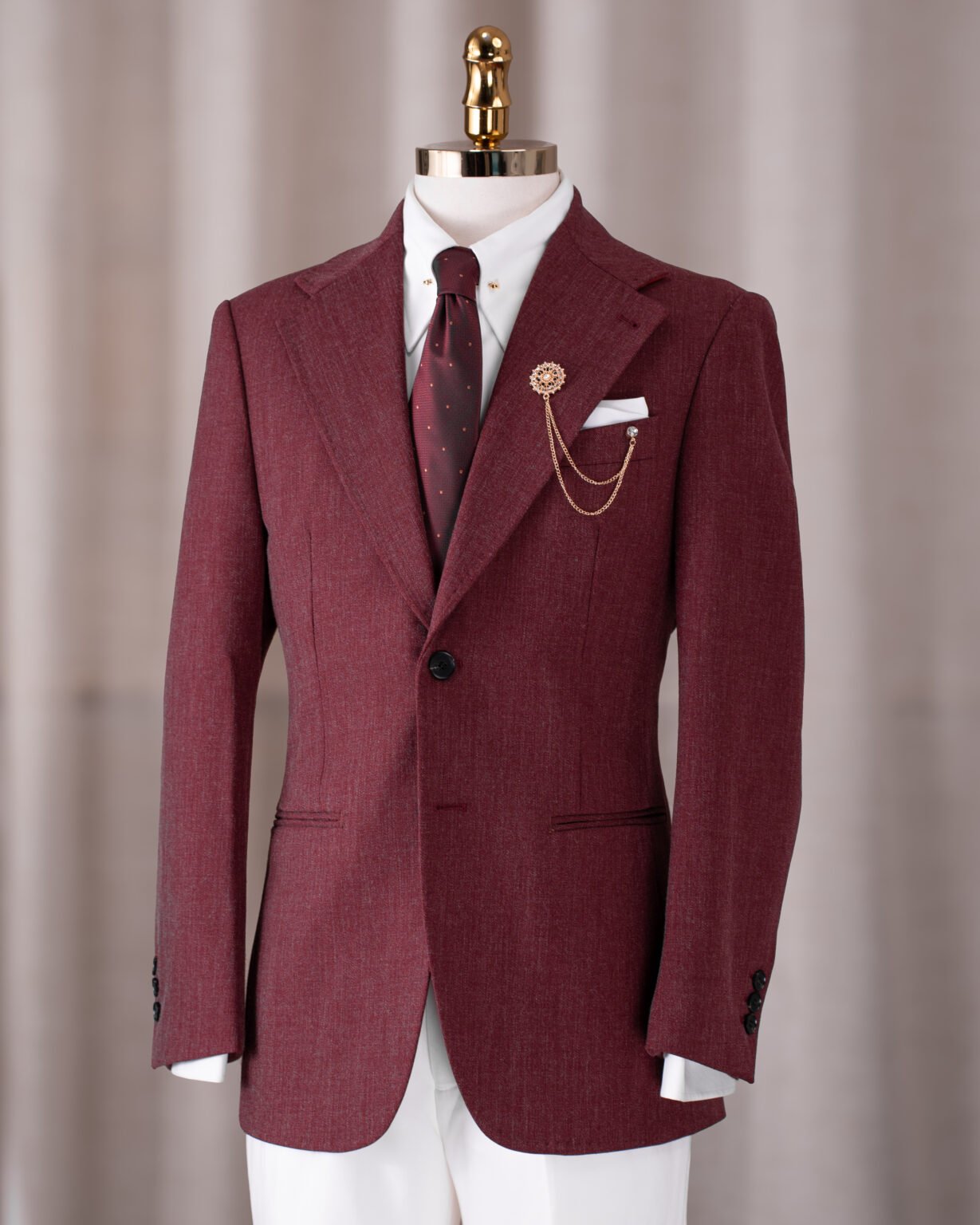 Blazer Merlot Regent sắc đỏ rượu vang sang trọng, phom dáng tinh gọn, chất liệu cao cấp – lựa chọn hoàn hảo cho chú rể và quý ông dự tiệc.