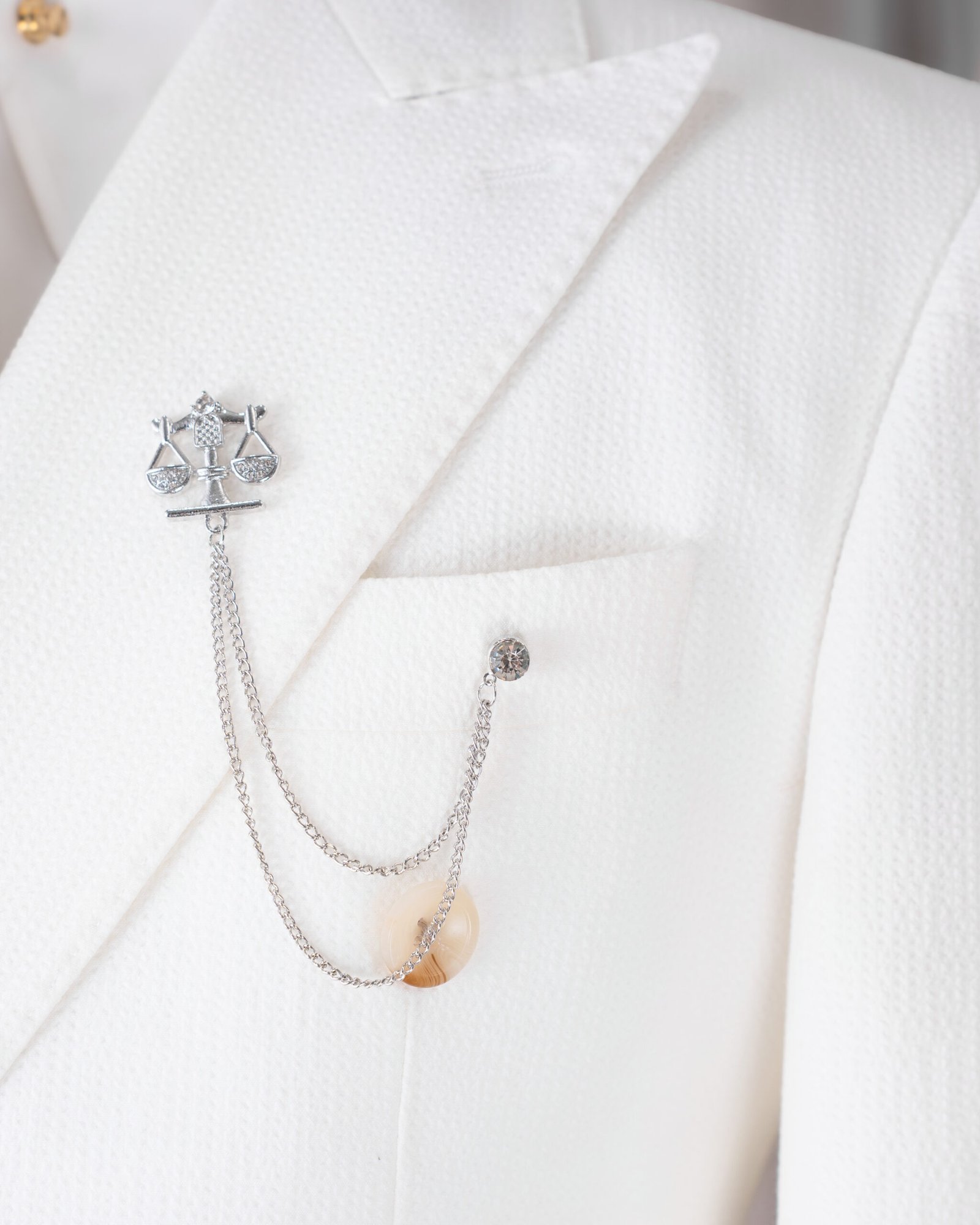 Bộ suit seersucker trắng tinh khôi với phom dáng double-breasted sang trọng, mang lại vẻ thanh lịch và nhẹ nhàng đúng chất Elegant.