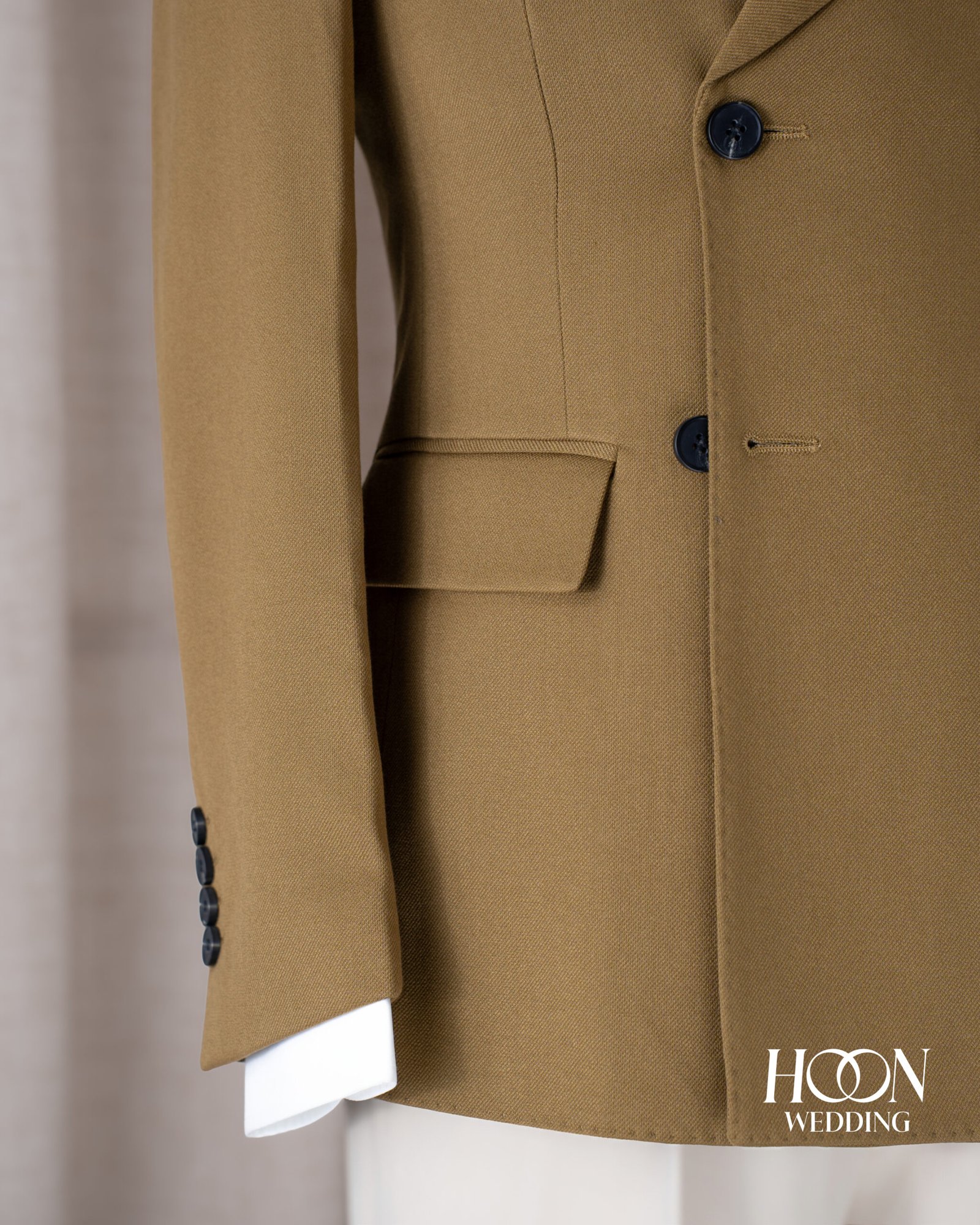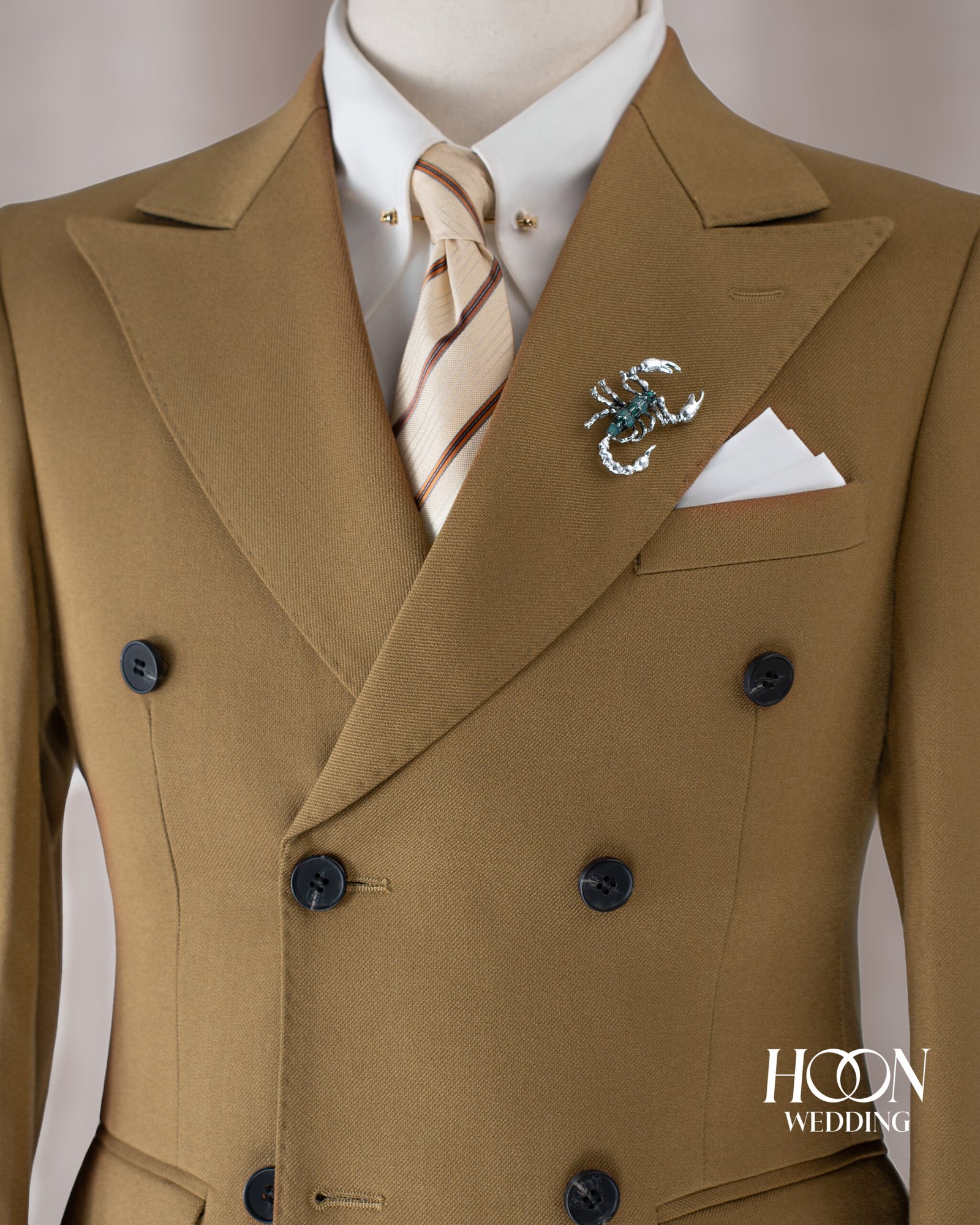 Signature Suit Must-Have Gold Double-Breasted. Suit hai hàng khuy màu nâu vàng độc đáo, ve áo Peak Lapel. Lựa chọn phá cách, sang trọng tuyệt đối.