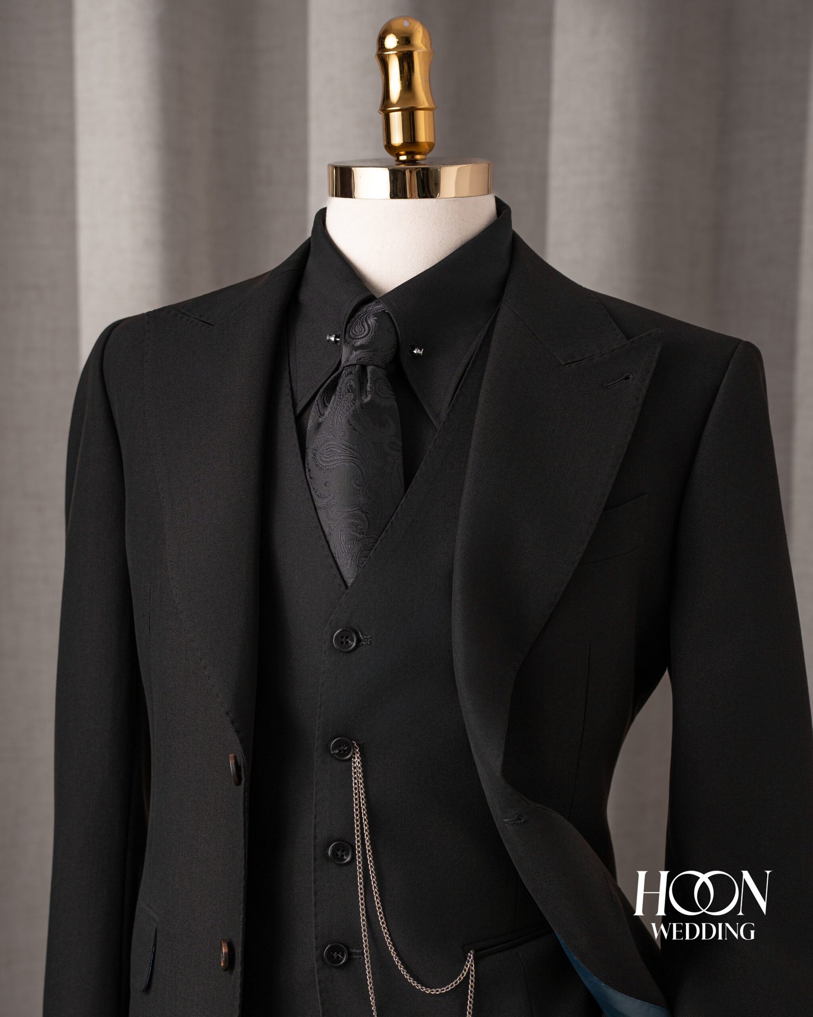 Noir Chain Shawl Lapel Suit – Sang trọng, mạnh mẽ và chuẩn phong thái quý ông hiện đại.