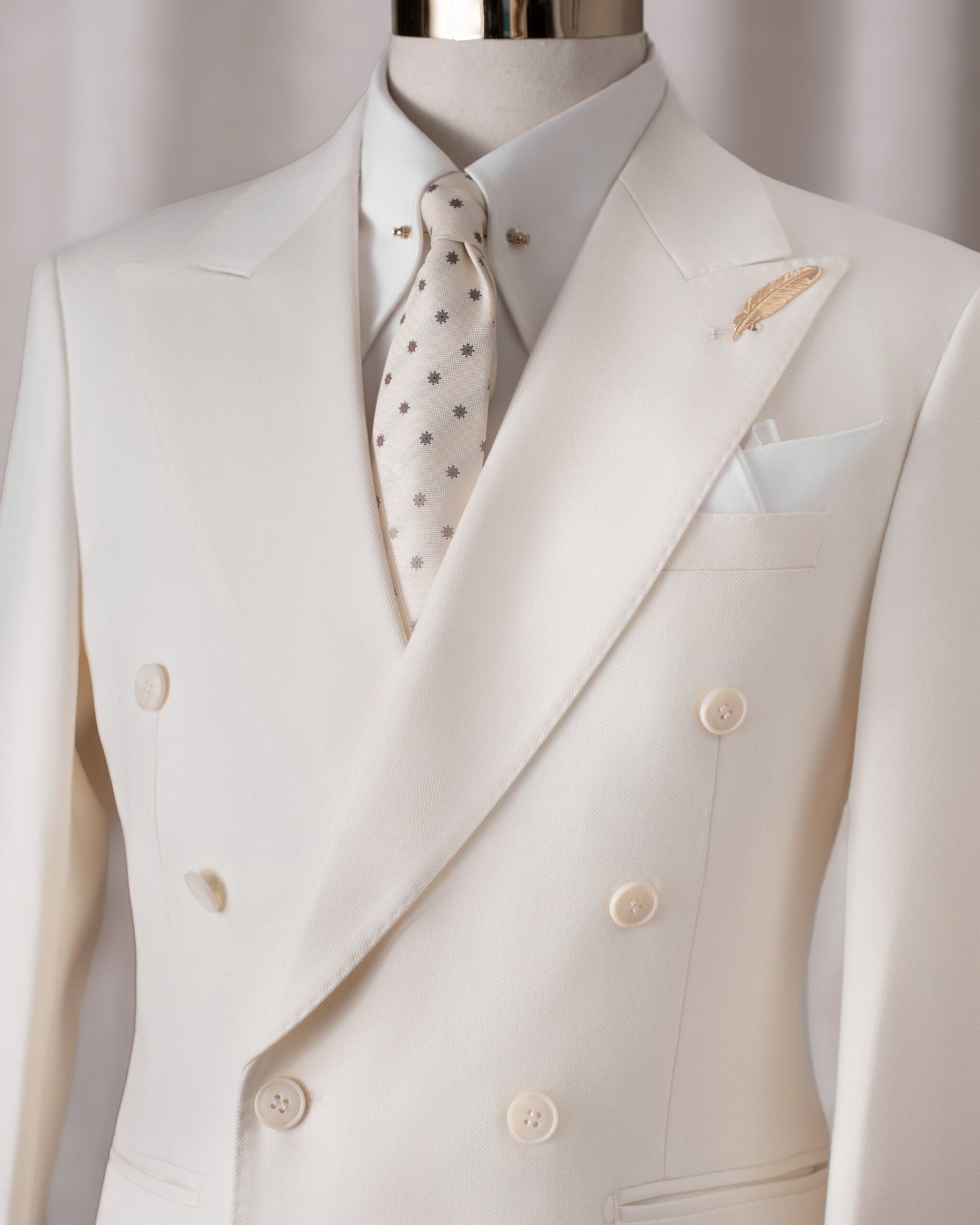 • Positano Cream Suit – Thiết kế double-breasted 6 khuy mang phong cách Ý cổ điển.