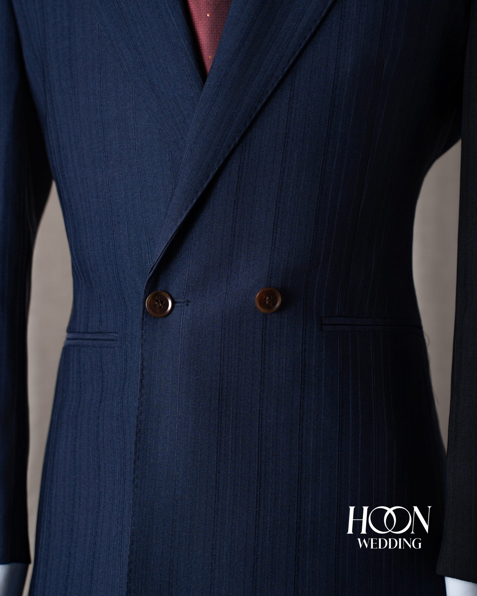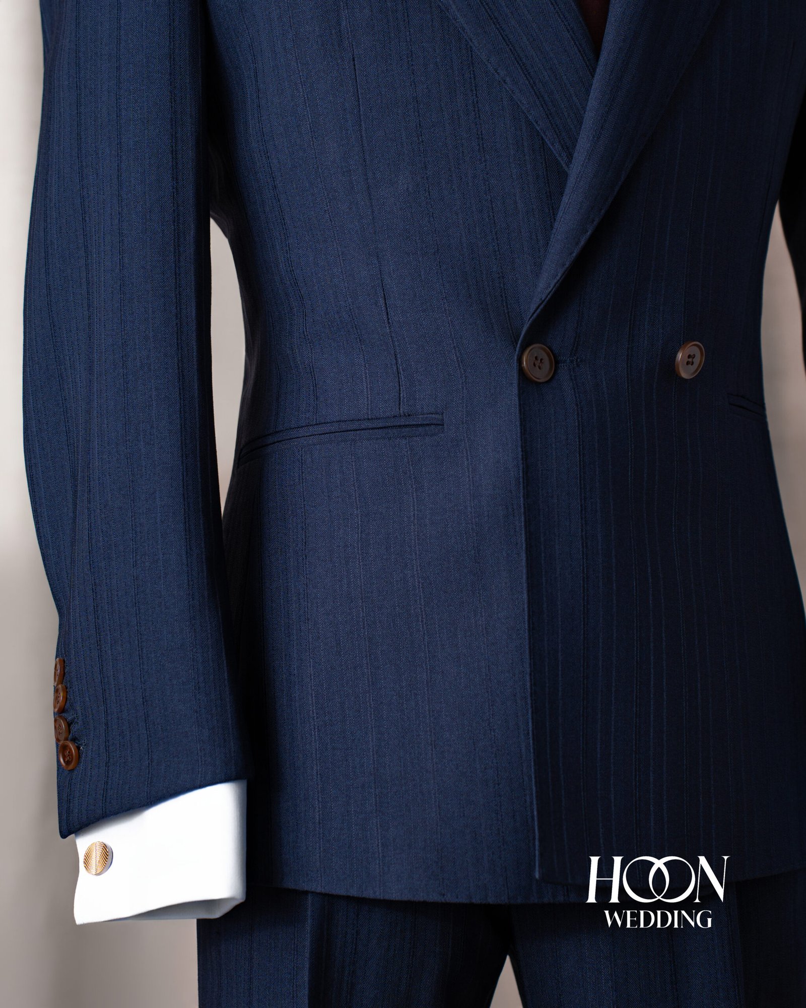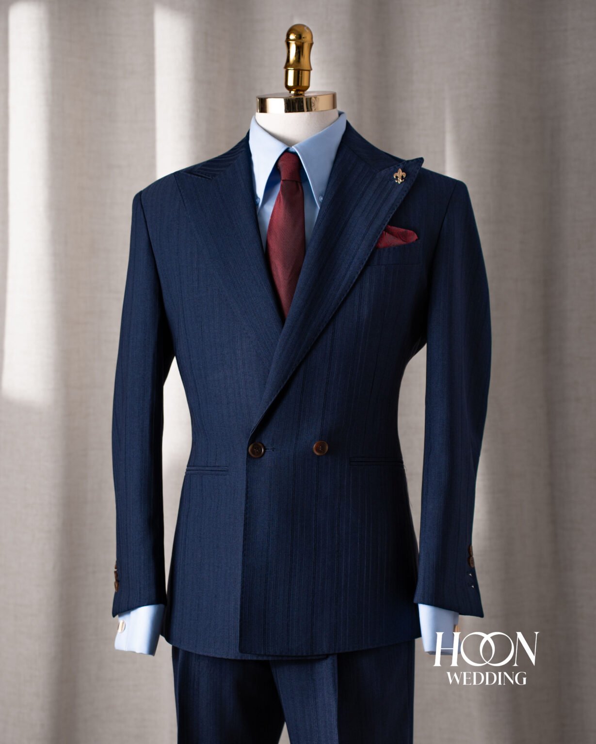 Bộ suit xanh navy hai hàng khuy Salzburg – thiết kế sang trọng, chuẩn phong thái quý ông hiện đại cho ngày cưới.