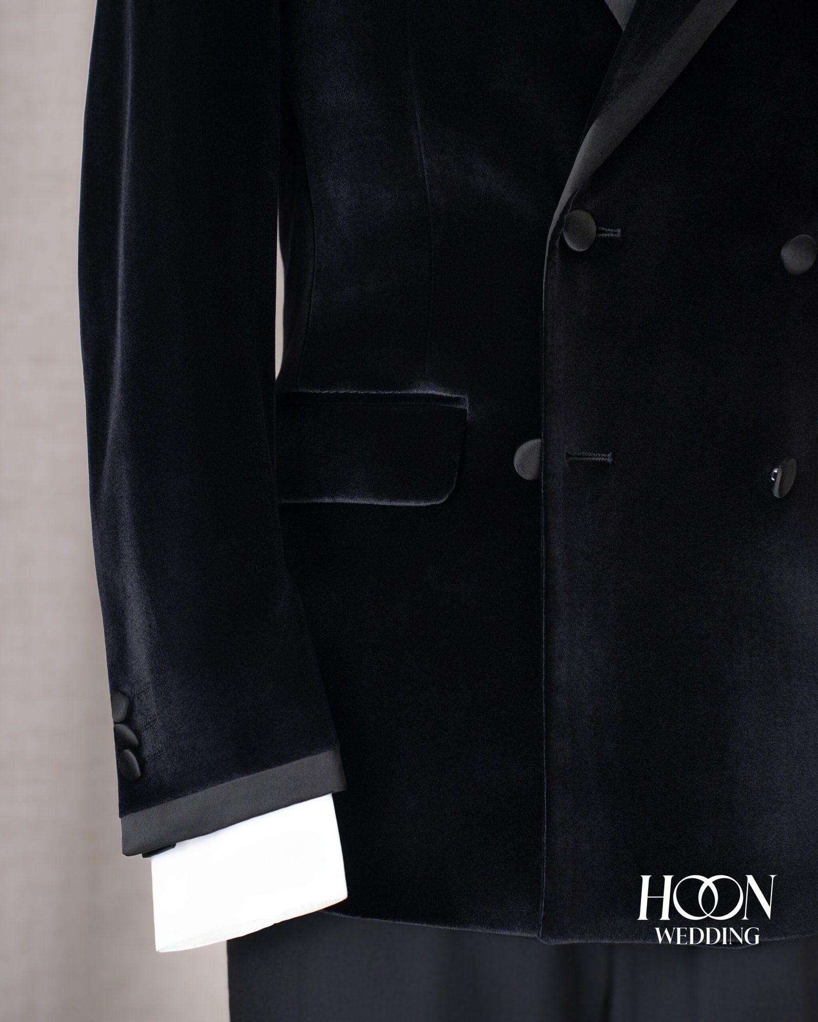 Limited Tuxedo The Midnight Imperial Velvet. Tuxedo nhung đen Double-Breasted, ve áo satin quý phái. Phong cách dạ tiệc tối thượng, độc quyền cho chú rể Limited Edition.