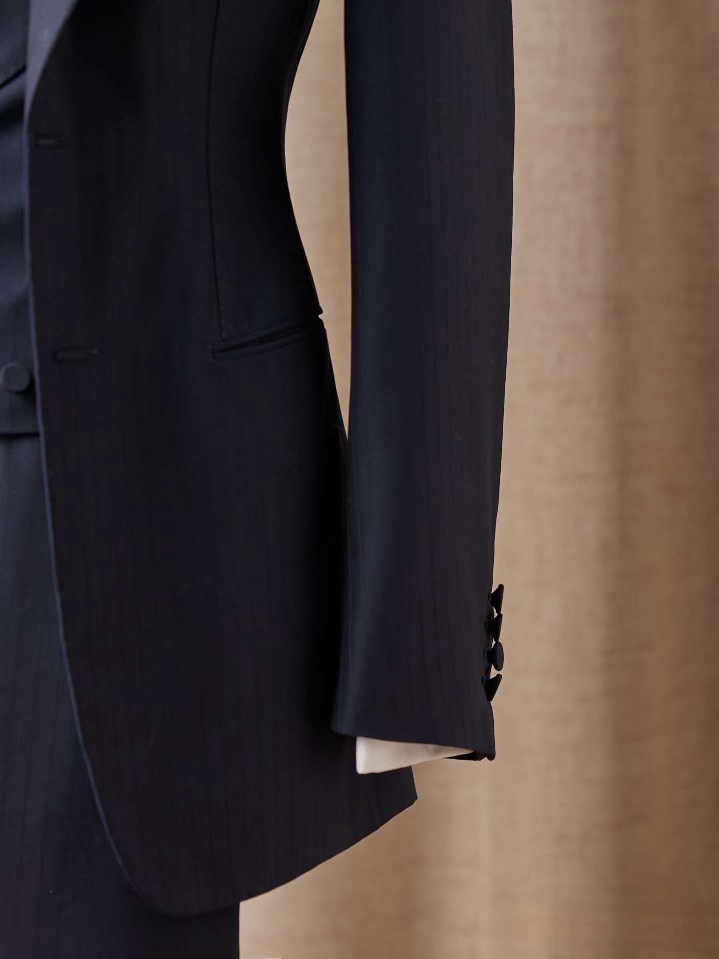 Chất liệu wool Italy cao cấp, kết hợp sọc chìm tone-on-tone tạo chiều sâu tinh tế.